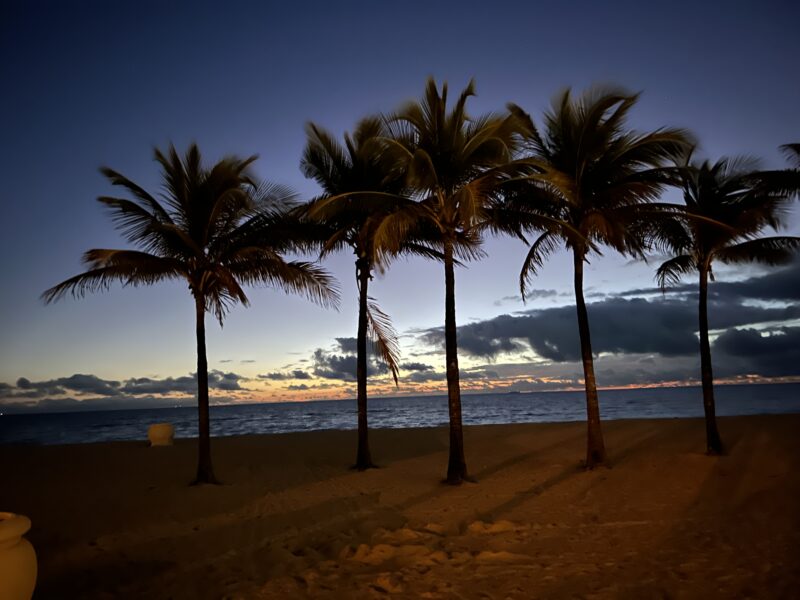 Hollywood Beach is a smooth, wide, white-sand beach. Not exactly a natural area: They regularly have to truck in fresh sand. And the palms aren’t native as well. But, I believe, they’ve been there as long as Hollywood has.